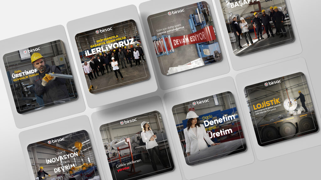 Proje sürecine, Birsac Demir Çelik’in kurumsal yapısını, sektörünü, hedef kitlesini ve rakiplerini derinlemesine analiz ederek başladık. Ardından, sosyal medya stratejimizi “kaliteli üretim-özverili ekip çalışması- zamanında teslimat” teması etrafında şekillendirdik. Birsac’ın ürettiği ürünlerin B2B’ye uygun bir şekilde vurgulayarak içerik ve tasarımlarımızı oluşturduk. Web sitesi tasarımında, kurumun vizyonunu yansıtacak şekilde ürünleri anlaşılır bir dille sunmayı ve kullanıcı deneyimini ön planda tutmayı hedefledik. Kurumsal tanıtım filminde ise Birsac’ın sektördeki konumunu, üretim süreçlerini ve ürün yelpazesini etkileyici bir anlatımla gözler önüne serdik. Gerçekleştirdiğimiz prodüksiyon çekimi sonucunda ürünlerin ve hatların görüntülerini web sitesinde konumlandırdık.