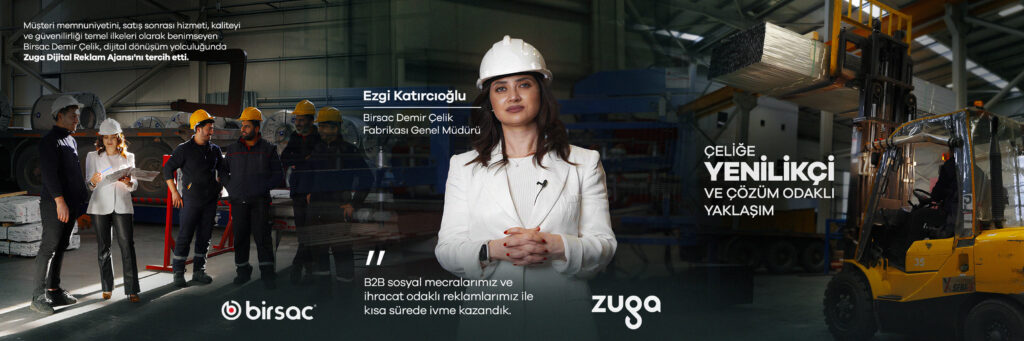 Birsac Demir Çelik, 2017’den bu yana müşteri memnuniyeti esaslı demir çelik ürünleri üreten bir sanayi kuruluşudur. Zuga Dijital ile işbirliği yaparak marka bilinirliğini artırmayı ve B2B hedef kitlesine daha etkin şekilde ulaşmayı hedeflemiştir. Bu kapsamda, ajansımızdan sosyal medya içerik üretimi ve yönetimi, web sitesi tasarımı ve kurumsal tanıtım filmi prodüksiyon hizmetleri alınmıştır. Temel amacımız, Birsac’ın ürünlerini daha anlaşılır bir şekilde sunarak müşterilerine ulaşmasını sağlamak ve sektörde farklılaşmasına katkıda bulunmaktır.